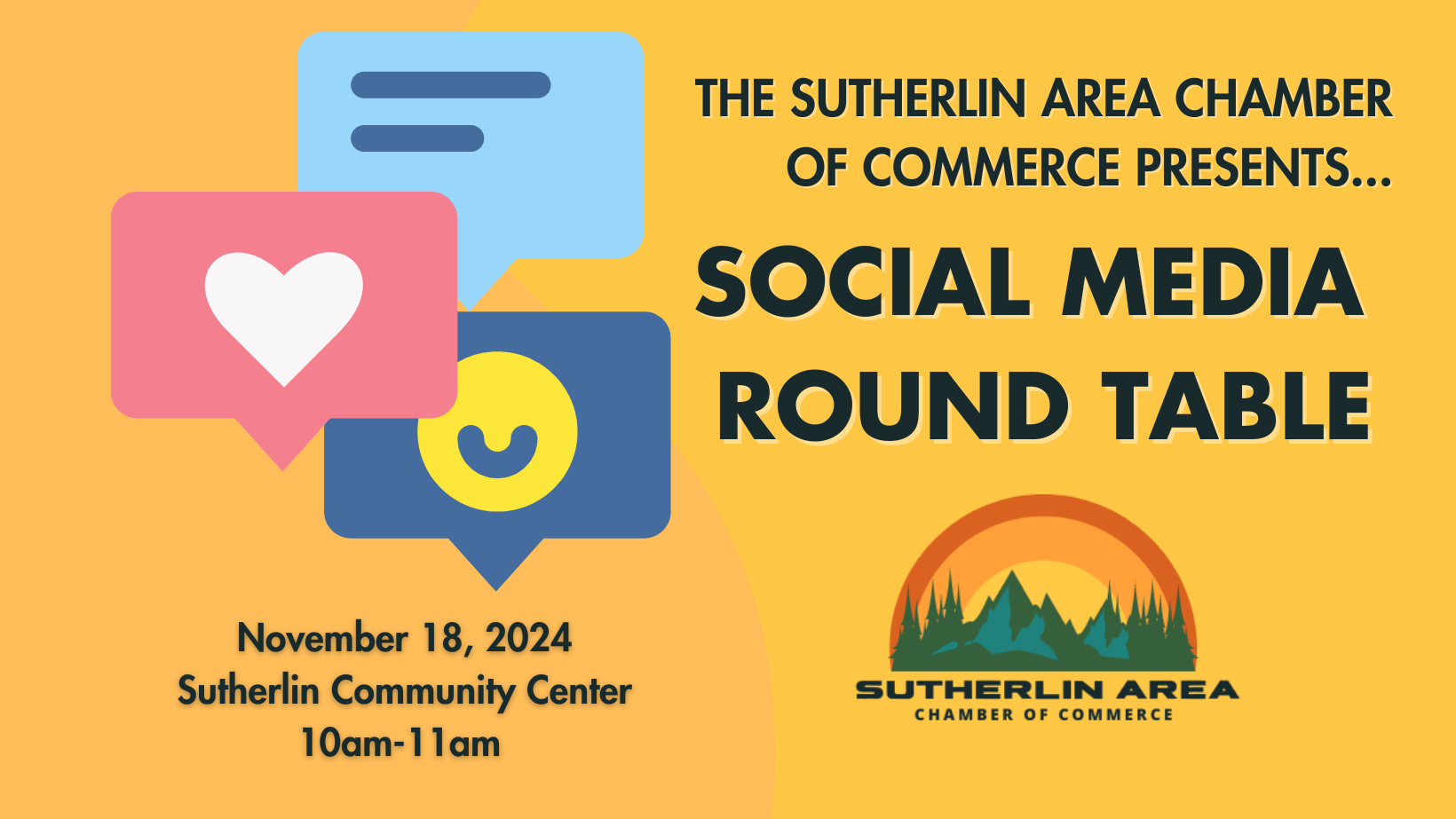 Social media is crucial for businesses as it provides a platform to connect with a vast audience, build brand awareness, engage customers, and drive traffic to your products or services. ..We welcome ALL social media skill levels and will be discussing tips and tricks, answering questions, and working together to elevate your business's social media profiles! This is a Sutherlin Area CHAMBER MEMBER EVENT; Chamber members are encouraged to bring a guest. Nonmembers must be guests of a Sutherlin Area Chamber of Commerce member to attend. All Attendees must Register to attend.