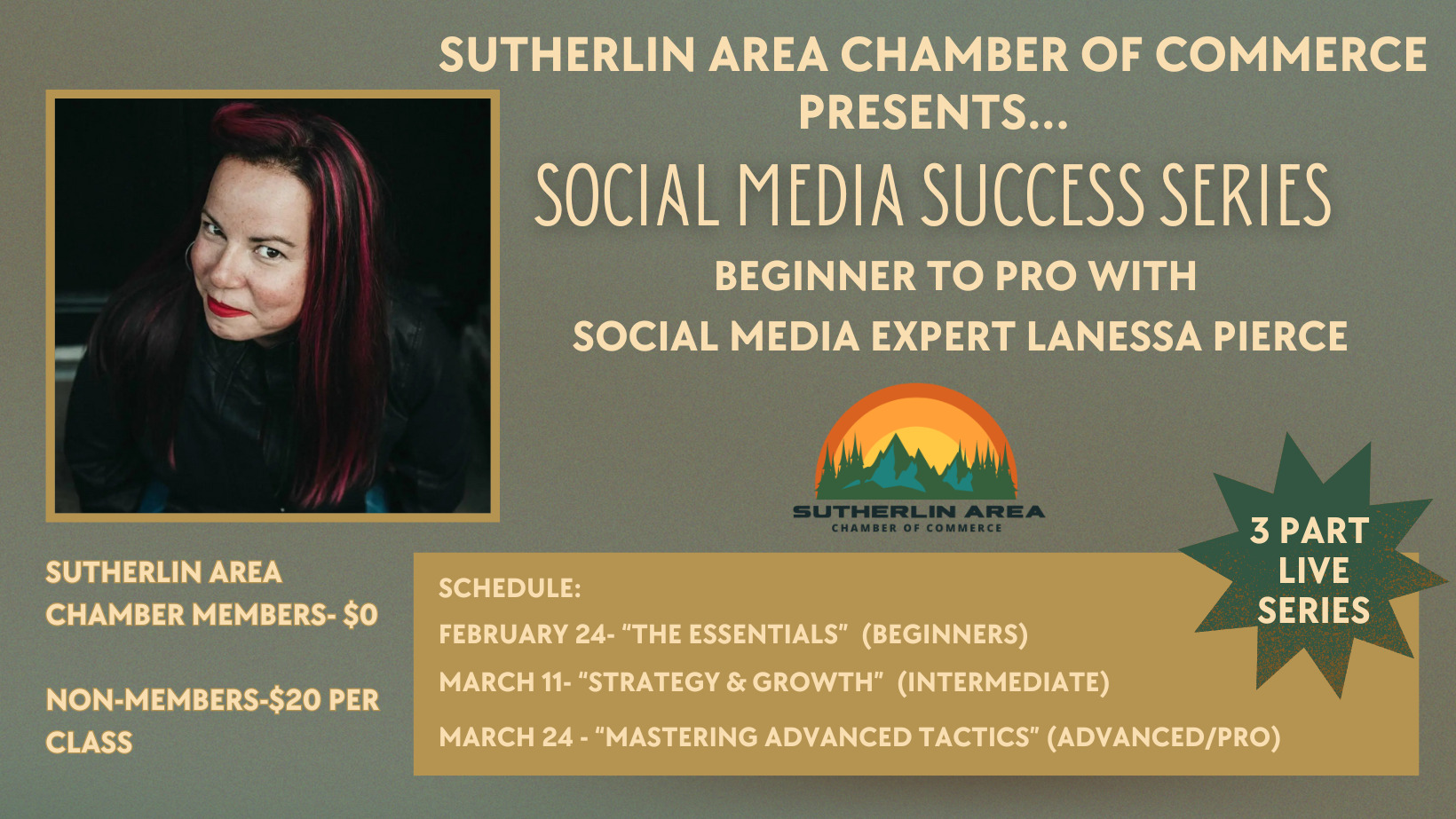 This event is Free for active Sutherlin Area Chamber of Commerce Members, if you are a member please register here, on the visitsutherlin.com website.